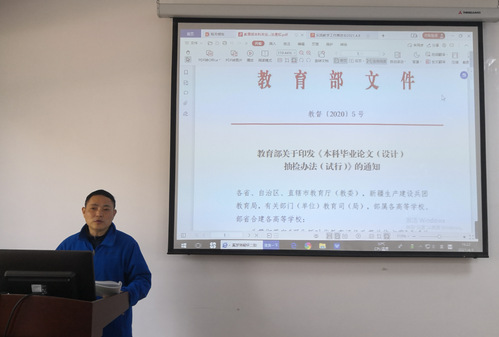 杨刚带领与会教师深入学习《教育部关于印发<本科毕业论文(设计)抽检办法(试行)>的通知》(教督〔2020〕5 号)。他提到,导师要及时向学生传达文件精神,严格毕业论文过程管理,加强毕业论文工作纪律和规范教育,指导方式结合线上线下方式灵活进行,讲究工作实效,确保毕业论文质量。同时他还要求实习支教指导教师应该认真研读深刻领会师范专业认证新理念、新要求,落实好实习支教各项工作,做好与实习生及实习支教单位领导老师的沟通交流工作,关注实习生思想动态,经常对学生进行安全教育,加强对实习生的管理。