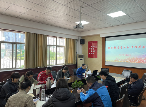 为了顺利推进体育教育专业认证工作,我院于2021年4月21日上午在2号楼111会议室召开体育教育专业认证推进会议,体育学院党总支副书记宋伟,院长助理、教学科研工作办公室主任杨刚,专业认证工作小组成员参加会议,会议由杨刚主持。
