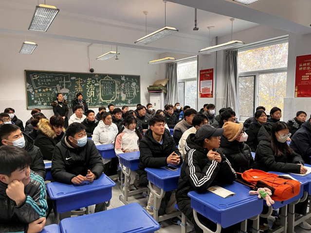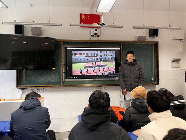 随后,体育教研组组长杨仲凯向我们简要介绍了张店区第九中学大课间安排,并且就同学们提出关于考编、就业等问题,给予了细致的回答。