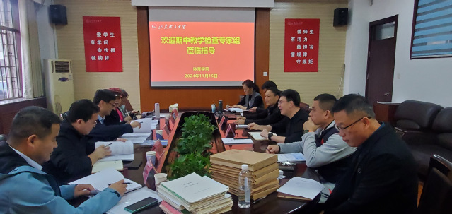 11月15日下午,学校期中教学检查专家组一行5人来我院进行2024-2025学年第一学期期中教学检查。学院党委书记、院长韩长江,副院长杨刚,体育教育系主任胡鹏,运动训练系主任高博,实验管理中心主任张保国,教学工作办公室主任韩军梅,教学秘书高君、白倩倩参加会议。
