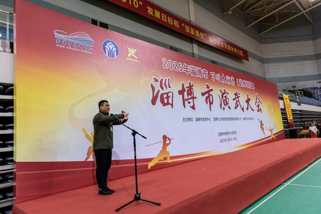 2025年10月18日,淄博市百姓大联赛(武术项目)暨淄博市演武大会在淄博市体育中心开幕。本届大会汇聚了69支代表队,近1700名武术健儿同台竞技,总参与规模逾两千人,共展中华武术魅力。体育学院体育教育系主任胡鹏带领28名体育教育专业师生组成裁判组,全程参与大会的竞赛、评分、检录、编排、计分、计时等核心裁判工作,以专业严谨的执裁表现获得赛事组委会与参赛队伍的高度认可。