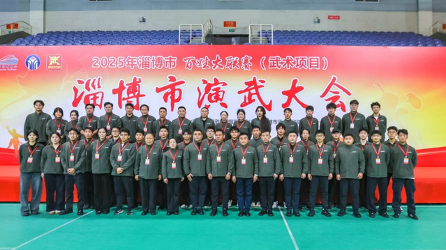 2025年10月18日,淄博市百姓大联赛(武术项目)暨淄博市演武大会在淄博市体育中心开幕。本届大会汇聚了69支代表队,近1700名武术健儿同台竞技,总参与规模逾两千人,共展中华武术魅力。体育学院体育教育系主任胡鹏带领28名体育教育专业师生组成裁判组,全程参与大会的竞赛、评分、检录、编排、计分、计时等核心裁判工作,以专业严谨的执裁表现获得赛事组委会与参赛队伍的高度认可。