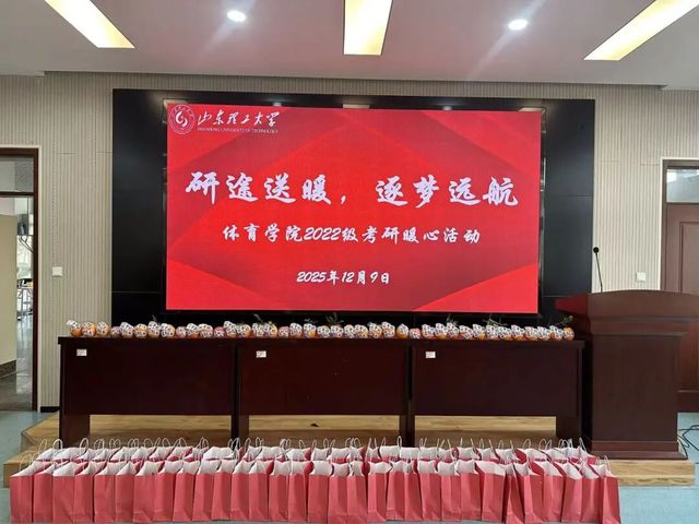 寒冬送暖,研途相伴。为鼓舞2022级考研学子士气,缓解冲刺阶段的备考压力,12月9日,体育学院于2号教学楼101会议室开展考研送温暖活动,亲切慰问奋力拼搏的学子们,为大家送上祝福礼包与暖心鼓励。