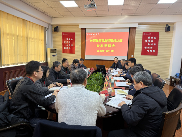 体育教育专业层面专家见面会在我院2-111会议室召开,会议由体育教育专业认证专家组组长王庆军教授主持,山东省教育科学研究院师范类专业认证中心主任唐文秀、副校长陈靖、教务处副处长王平、学院领导班子和专业负责人参加会议。学院副院长杨刚作专业补充说明汇报,专家组围绕专业考查重点进行问题循证。