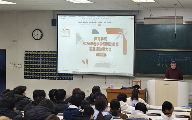 为深入贯彻落实学校劳动教育工作要求,引导学生树立正确的劳动价值观,培养良好的劳动习惯和实践能力,近日,体育学院在2教101会议室和4教105室分专业召开2026年春季学期劳动教育实践课动员大会,学院2025级全体本科学生参加会议,学院2025级辅导员韩钊主持会议。