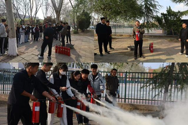 会议结束后,安保处左敏老师带领全体宿舍长与参会师生前往校园指定空地,开展现场消防安全实操演练。左敏老师现场示范、细致讲解灭火器“提、拔、握、压”标准使用步骤,逐一拆解操作要点与注意事项,让大家直观掌握初期火灾扑救技能。随后,同学们依次上前亲手操作、亲身实践,在实战体验中巩固消防安全知识,切实提升应急处置与自救互救能力。