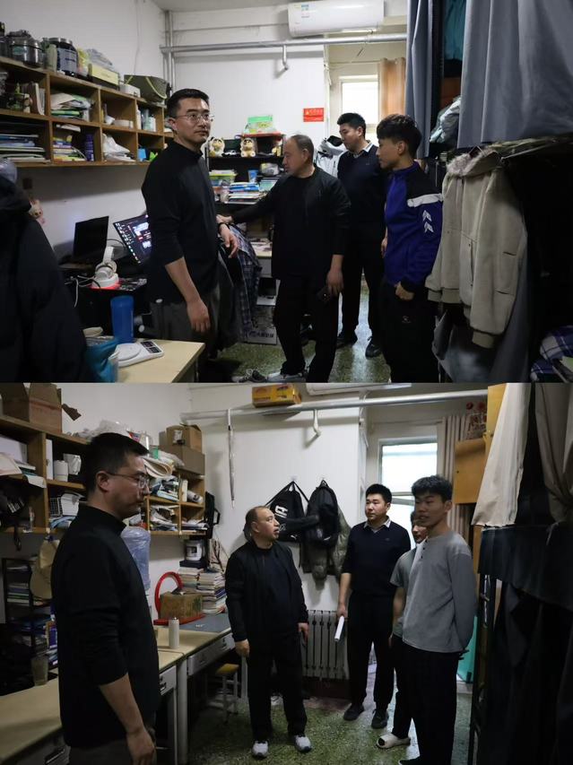 最后,曹绪亮副书记带领全体辅导员深入学生宿舍开展实地走访与专项检查,重点查看宿舍环境卫生、物品摆放、安全用电及消防隐患排查情况,对违规用电、卫生不达标等问题现场提出整改意见,明确整改时限,督促学生立即整改、全面落实,以实战演练强化安全意识,以实地督导压实管理责任,确保宿舍安全管理各项要求真正落地见效。