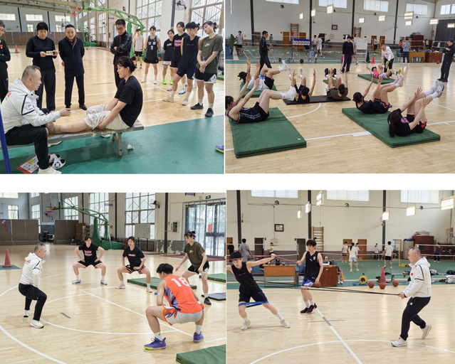 座谈结束后,牛雪松教授前往篮球馆,对女篮队员进行体能训练专项指导。结合女篮队员的竞技特点和训练需求,牛雪松教授现场示范了核心力量、爆发力、耐力等关键体能指标的训练方法,细致讲解了不同训练动作的技术要领、发力规范及注意事项,重点指导队员如何通过科学训练提升运动表现、预防运动损伤,尤其针对比赛中体能分配、疲劳恢复等实际问题给出了具体方案。队员们认真聆听、积极实操,在训练中及时调整动作,现场学习氛围浓厚。指导过程中,牛雪松教授还与女篮教练员深入交流,就球队体能训练计划的优化、个性化训练方案的制定等内容交换了意见,为球队后续科学备赛提供了专业支撑。