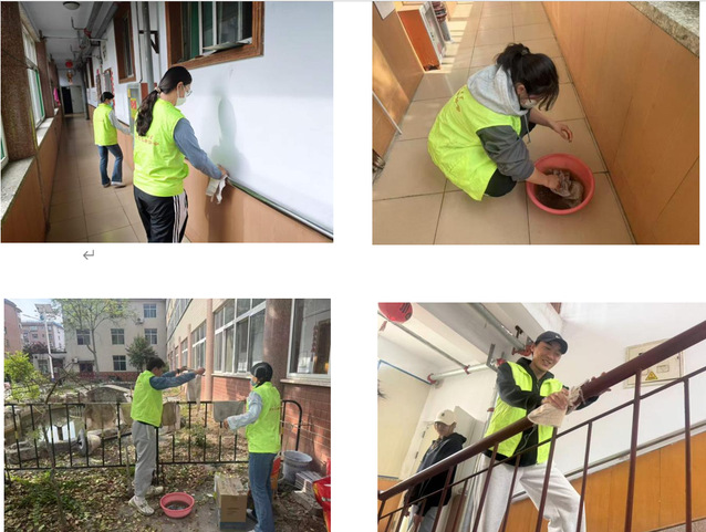 志愿活动现场暖意涌动,各项服务井然有序。志愿者们提前备齐清洁抹布、抑菌消毒液、清洁毛刷、收纳垃圾袋等全套工具,迅速分组、明确分工、各司其职,全身心投入到公寓环境消杀整治工作中。针对公寓楼道拐角、长廊护栏缝隙、楼梯扶手等易积尘、易忽略区域,志愿者们细致排查、逐一清理:先用消毒液进行定点喷淋消杀,再手持抹布反复擦拭洁净,俯身清理每一处堆积浮尘,不放过任何卫生盲区,不漏掉一个消杀点位。躬身劳作的身影穿梭在楼栋之间,志愿者们以细致周到的服务,倾力为老人们筑牢干净整洁、健康安心的日常起居防护屏障。
