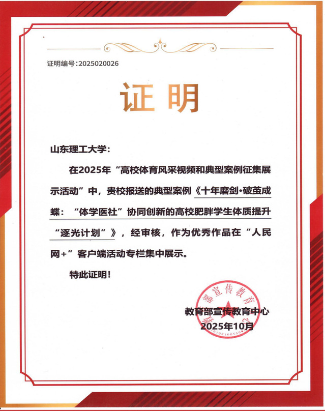 这一创新实践,早已走出校门,获得社会广泛认可。新华网、中国网、山东电视台、闪电新闻等权威媒体多次专题报道该校体质提升班的做法与成效。2026年,该案例更是从全国众多高校中脱颖而出,成功入选教育部“高校体育风采视频和典型案例”,成为全国高校“以体育人”的示范样本。