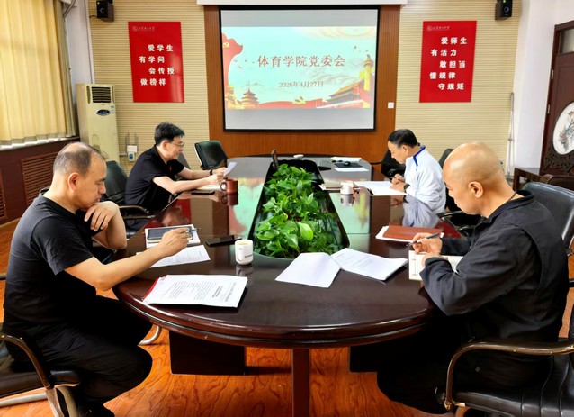 4月27日上午,体育学院党委召开党委会,会议由学院党委书记韩长江主持,全体党委委员出席。